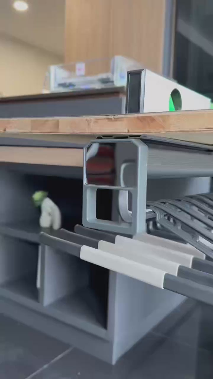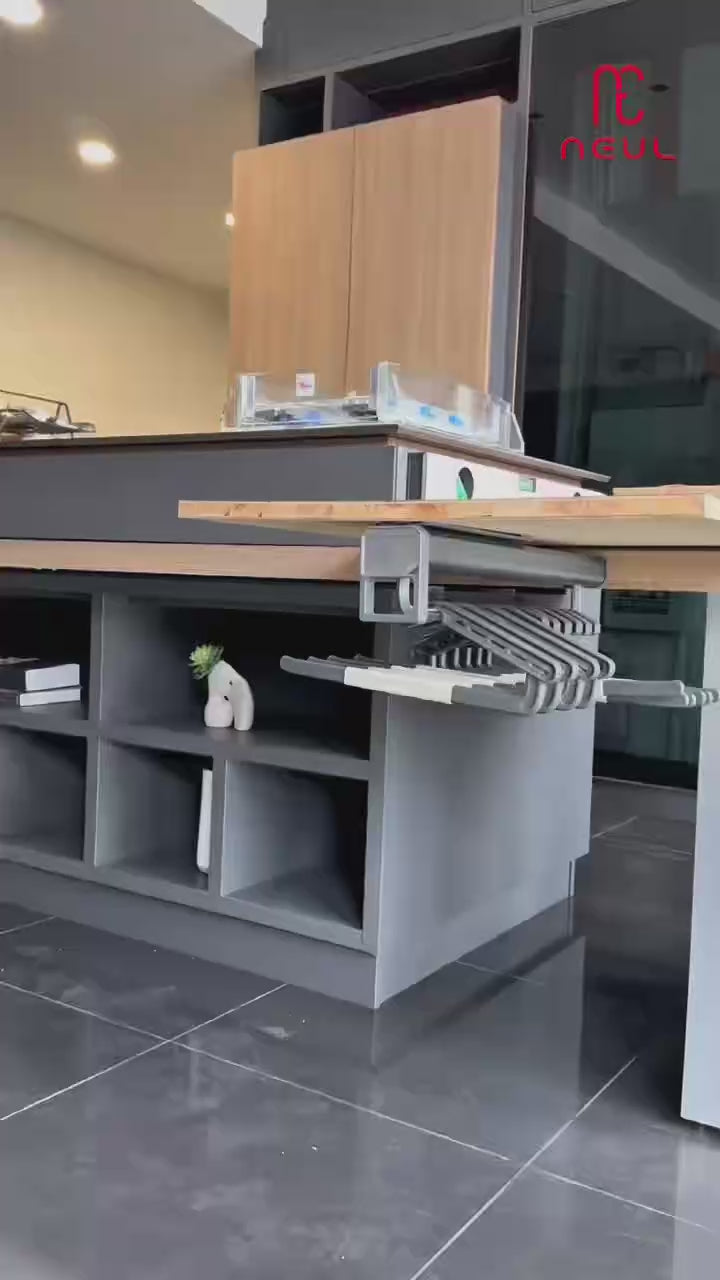 This sleek and modern storage rack is designed to help you organize and access your clothes with ease. The full-extension guide rail lets you pull out the entire rack smoothly, and slides back in telescopically so you can quickly grab or hang your clothes without hassle. Its compact design fits neatly under your wardrobe shelf, making smart use of space. The soft Feather Sand Grey finish blends beautifully with any modern wardrobe style.